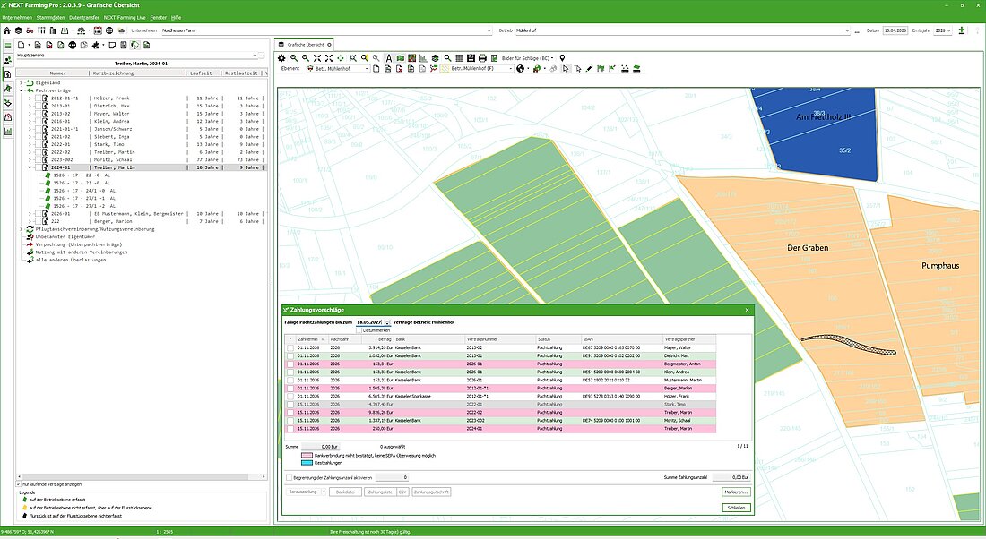 Führung aller Verträge und Eigentumsflächen mit Laufzeitkontrolle – bis hin zur Erstellung der Bankdatei (SEPA).