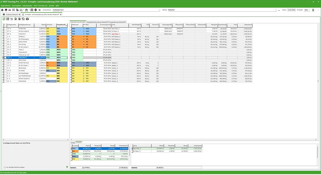 Erntejahr- und Kostenplanung